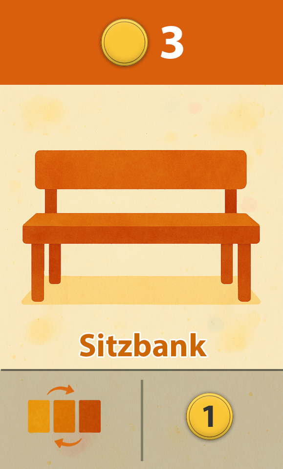 Zum Spielstart erhaltet ihr jeweils 8 Leerstandskarten: 3x „Leerstand“ ohne negativen Effekt / 3x Leerstand mit negativem Effekt / 1x „Trinkhalle“ und 1x „Sitzbank“.